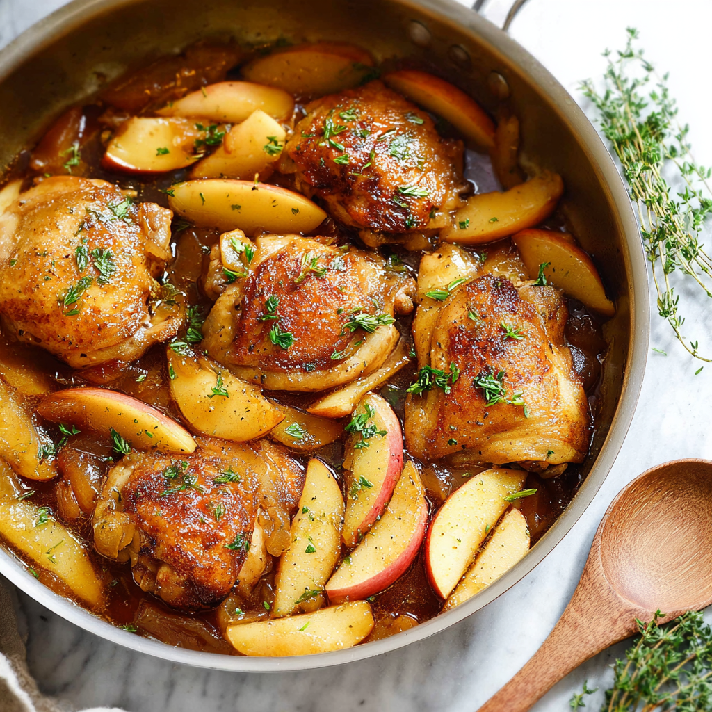Want a richer, more complex flavor? Add 1–2 tablespoons of bourbon when deglazing the pan. The alcohol cooks off in the oven but leaves behind a warming depth that complements the sweet apples and savory herbs.