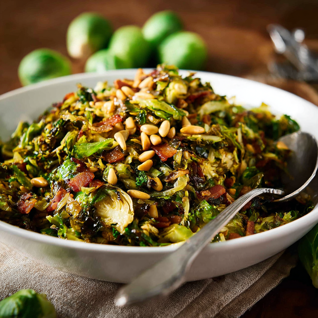 This Shaved Brussels Sprouts with Pancetta and Balsamic recipe proves that a few simple ingredients can create an unforgettable side dish. The combination of crisp, caramelized sprouts, salty pancetta, buttery pine nuts, and sweet balsamic glaze makes every bite rich and satisfying.