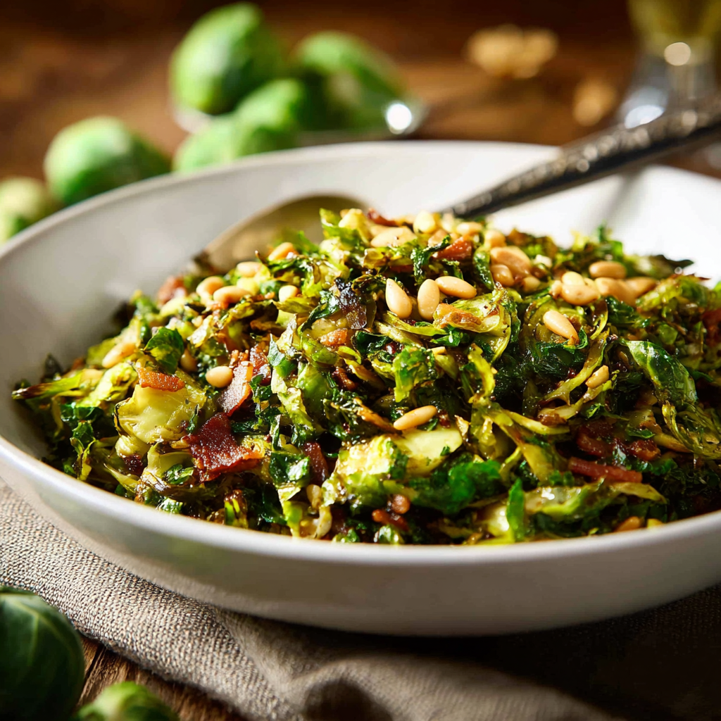 Learn how to make Shaved Brussels Sprouts with Pancetta and Balsamic — a savory, crispy, and slightly sweet side dish perfect for holidays or weeknight dinners.