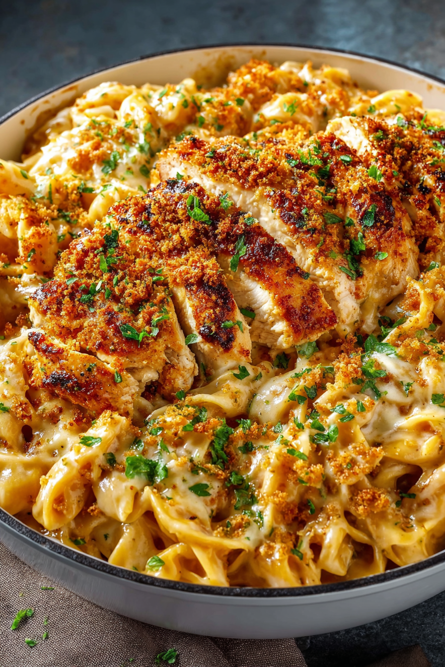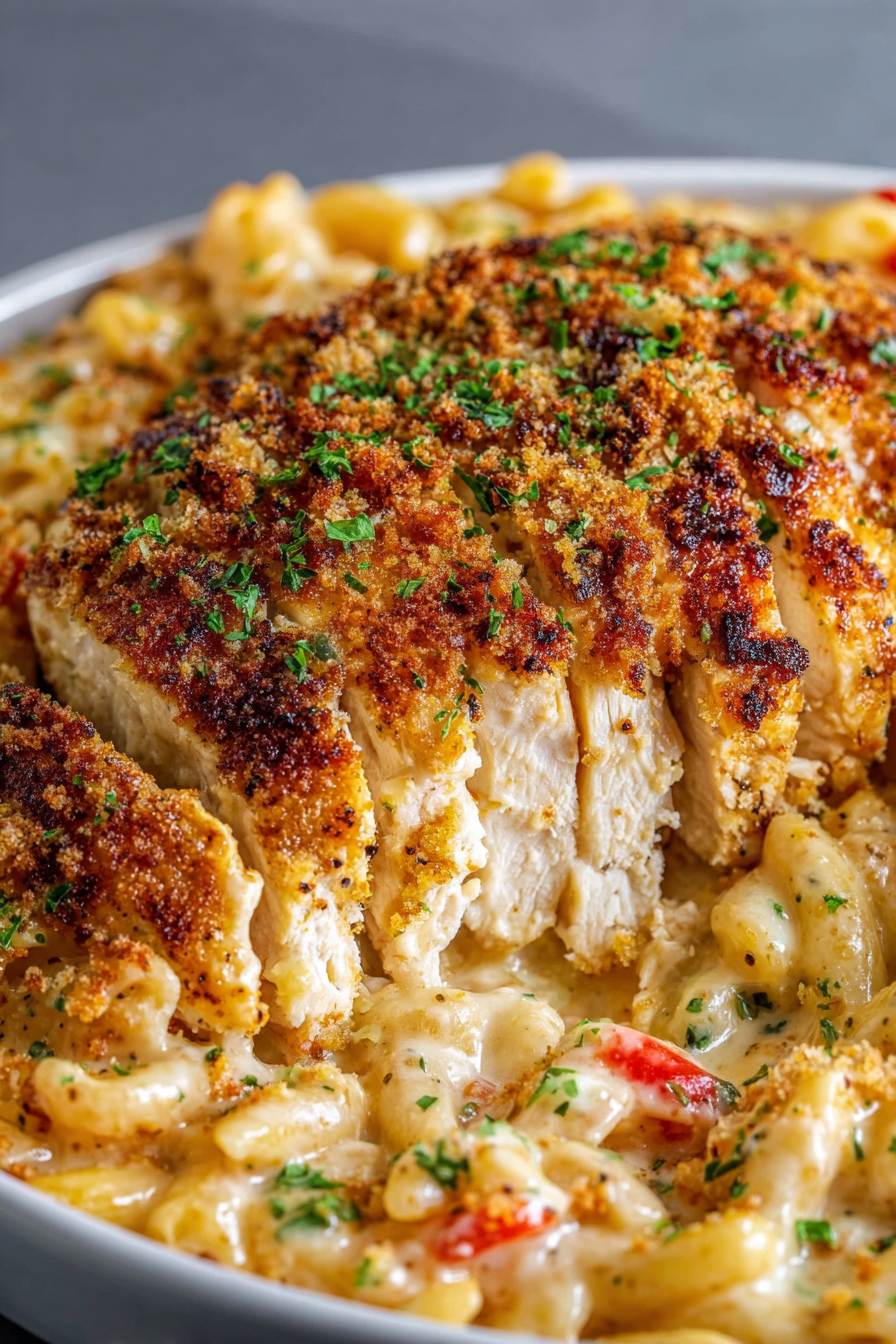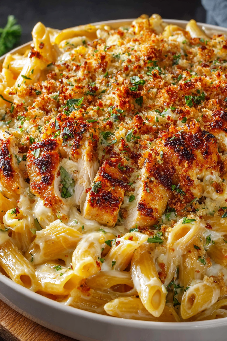 This casserole is highly adaptable, which makes it fun to experiment with. Swap penne pasta for rigatoni, ziti, or even rotini if that’s what you have on hand. For a lighter version, try using half-and-half instead of heavy cream, or substitute Greek yogurt for part of the sauce to cut down on richness. If you’re vegetarian, skip the chicken and add roasted vegetables like bell peppers, zucchini, or mushrooms for a satisfying twist.