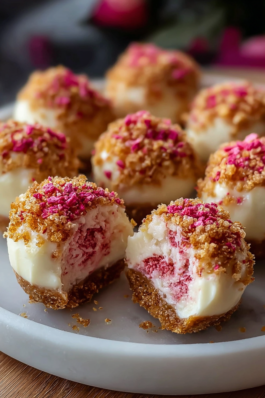 Creamy no-bake cheesecake bites with a buttery graham cracker crust and a nostalgic strawberry crunch topping. Perfect for parties and celebrations.