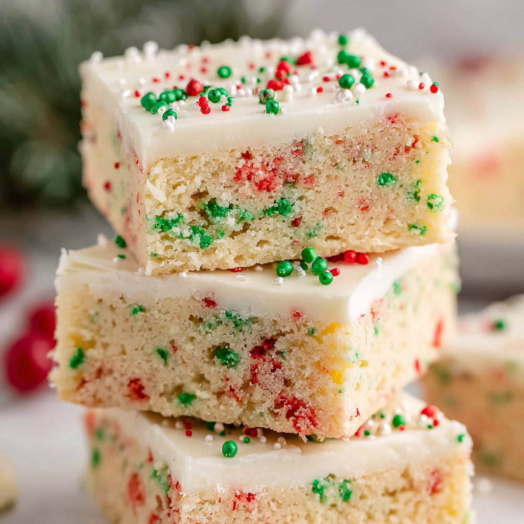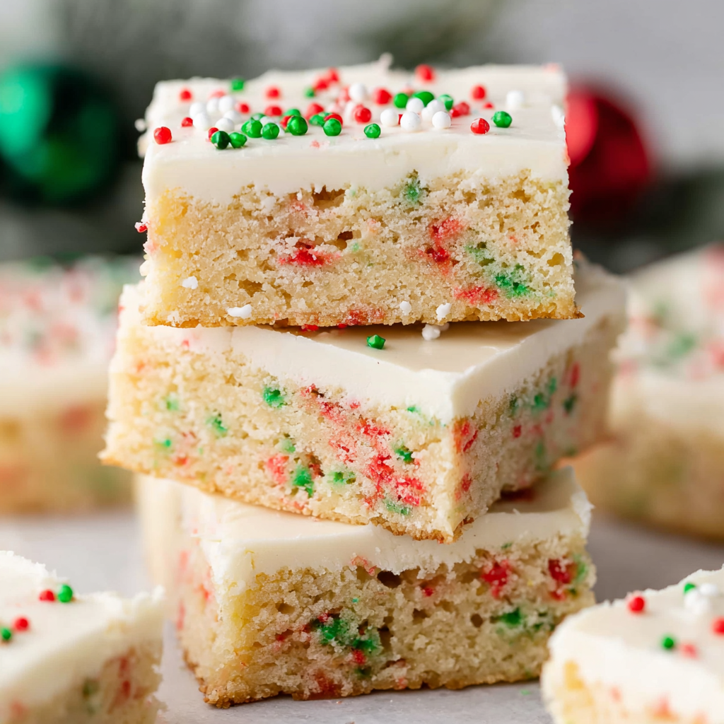 Soft, festive Sugar Cookie Bars with creamy frosting and sprinkles. Easy holiday dessert everyone loves. Perfect for parties and gifting.