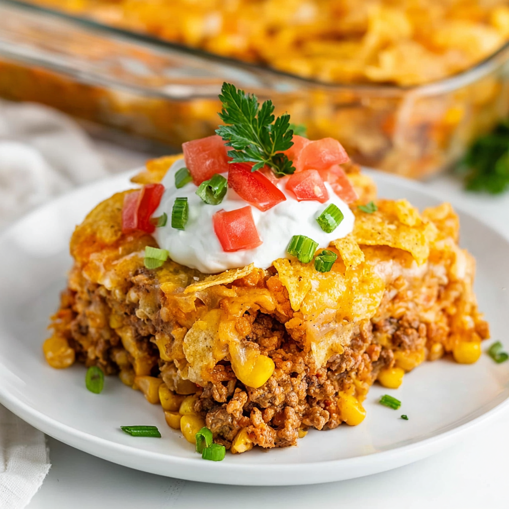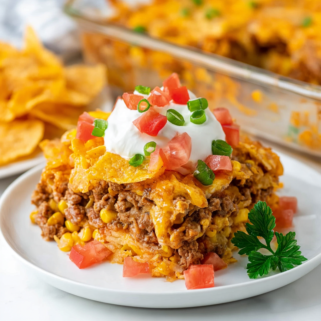 This Taco Doritos Casserole combines all your favorite taco night flavors in one easy, cheesy bake. Crunchy Doritos, spiced beef, corn, tomatoes, and melted Mexican cheese blend together in a creamy, crave-worthy casserole that’s perfect for busy nights or potlucks. Add your favorite toppings for a personalized twist!